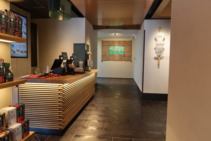 菊の渓店は、そんな歴史を踏まえて“珈琲茶屋”をコンセプトに、江戸時代の茶屋文化を現代風に再解釈したデザインとなっています。