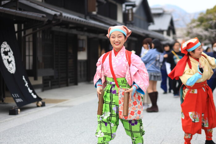 出番を待つ町娘たち。こちらのカメラに気づいて、すかさずニッコリ