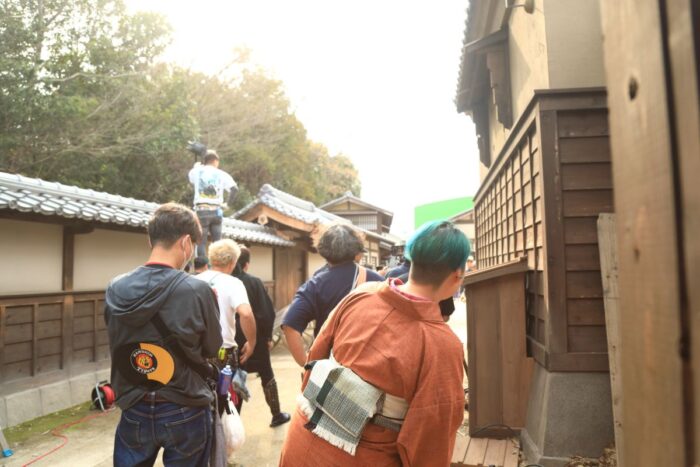 多くのスタッフさんが見守る中、殺陣師・清家一斗さんが殺陣をつけるシーンが進む