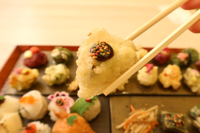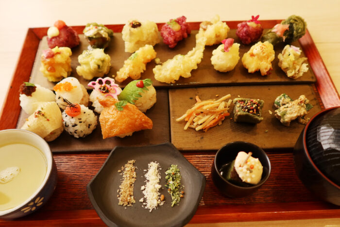 「食べるのがもったいない…」と思ってしまうほどの手まり寿司の可愛らしさと、旬素材を使った天ぷら。
